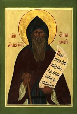 εννήθηκε στίς 23 Νοεμβρίου τοῦ 1812 στό χωριό Μεγάλο Λιπόβιτς τῆς περιφέρειας τοῦ Ταμπώφ. Ὁ πατέρας του ὀνομαζόταν Μιχαήλ Θεοδώροβιτς Γρένκωφ καί ἡ μητέρα του Μάρθα Νικολάγεβνα. Εἶχαν συνολικά ὀκτώ παιδιά καί ὁ Ὅσιος Ἀμβρόσιος ἦταν ἕκτος στήν σειρά. Τό βαπτιστικό ὄνομα τοῦ Ὁσίου ἦταν Ἀλέξανδρος καί ἡ εὐσεβής οἰκογένειά του τόν ἀνέθρεψε σύμφωνα μέ τίς ἐπιταγές τοῦ Εὐαγγελίου, ἂν καί ὁ ἴδιος, ἀπό μικρός, ἦταν πολύ ζωηρός ἀλλά καί πολύ εὐφυής.