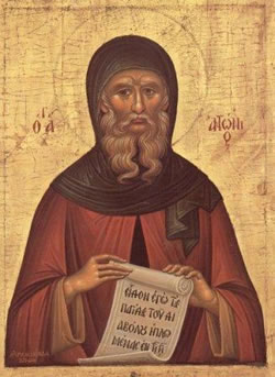 Τὸν ζηλωτὴν Ἠλίαν τοῖς τρόποις μιμούμενος, τῷ Βαπτιστῇ εὐθείαις ταῖς τρίβοις ἑπόμενος, Πάτερ Ἀντώνιε, τῆς ἐρήμου γέγονας οἰκιστής, καὶ τὴν οἰκουμένην ἐστήριξας εὐχαῖς σου. Διὸ πρέσβευε Χριστῷ τῷ Θεῷ, σωθῆναι τὰς ψυχὰς ἡμῶν.